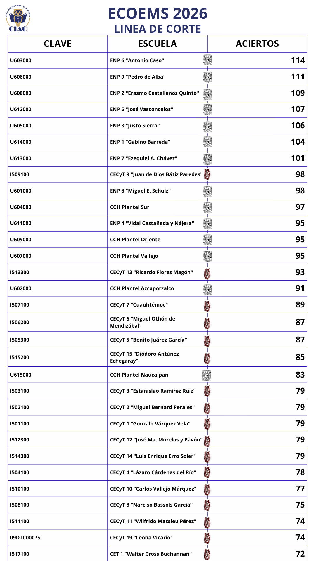 Los aciertos para ingresar a cada institución del ECOEMS pueden variar cada año según la demanda de estudiantes y los lugares disponibles en cada plantel. Por ello, el puntaje mínimo puede subir o bajar, especialmente en escuelas de alta demanda como UNAM e IPN.